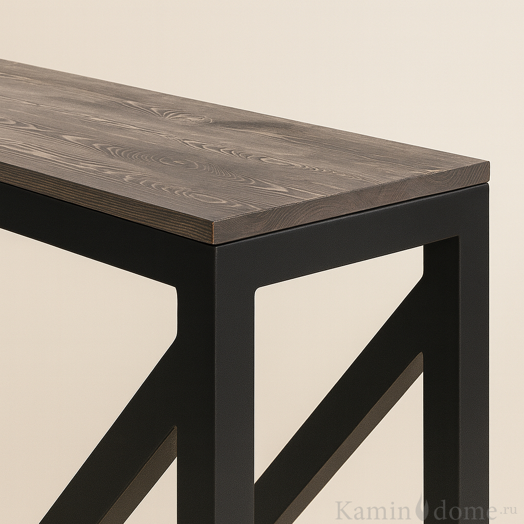 - Столешница из сосны, покрытая маслом с воском — надёжная защита от влаги, УФ-излучения и паразитов. Поверхность долговечная, приятная на ощупь и подчёркивает естественную текстуру дерева.