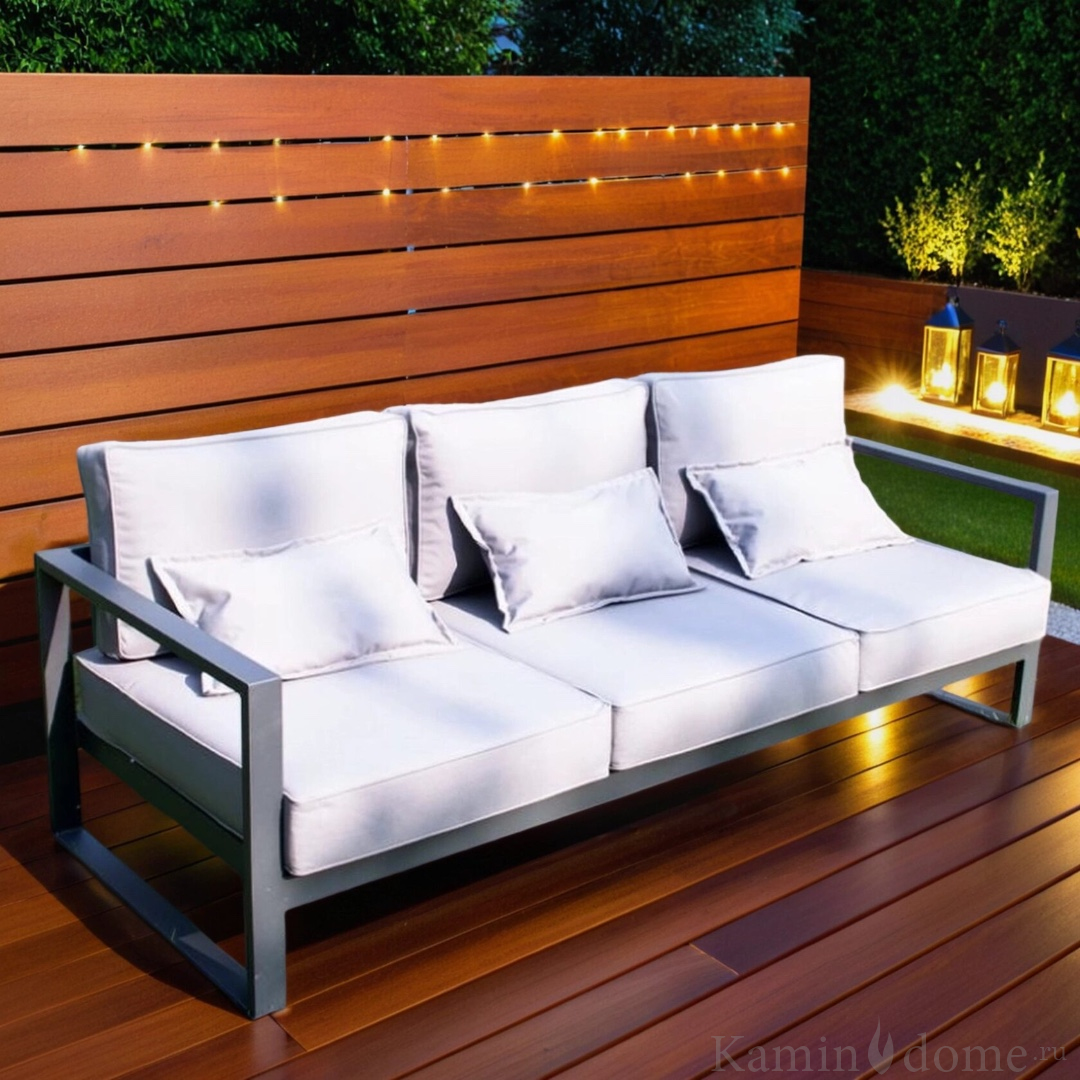 Продукция поставляется в собранном виде: каркас и 6 подушек. Вам не потребуются инструменты или услуги сборщика — достаточно распаковать диван, разместить подушки и наслаждаться отдыхом на свежем воздухе. Благодаря лёгкому алюминиевому каркасу диван без подушек легко перемещать, создавая новые лаунж-зоны и менять обстановку по настроению.